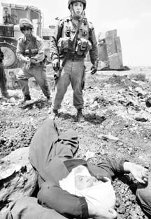 Una mujer palestina yace en el suelo tras ser reprimida por soldados israelíes durante una protesta contra la construcción de llamado "muro de seguridad" en la localidad cisjordana de Az-Zawiya. Al cierre de la edición no se tenía el saldo de la operación militar FOTO REUTERS