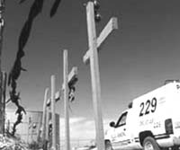 ESTA ES LA TERCERA -Y ULTIMA- navegación dedicada a los feminicidios de Ciudad Juárez y no he mencionado más que 3 o 4 por ciento de las referencias sustanciosas que hallé en Internet sobre el tema. Entre los muchos festivales artísticos realizados el año pasado -cuando se cumplieron 10 años del inicio de los asesinatos- para demandar castigo a los culpables y alto a las muertes, el más apabullante fue el primer Encuentro Internacional de Artes sobre el Feminicidio en Ciudad Juárez, que tuvo lugar en el Museo de la Ciudad de México en noviembre y diciembre, y en el que se presentaron medio centenar de trabajos de danza, teatro, performance, video, cortometraje, música, poesía y cuento, además de libros y revistas. El espectáculo Murmullos en el desierto, dirigido por Alma Morales, y en el que 16 participantes conjugan danza y teatro, se estrenó en Monterrey y se ha presentado en diversos foros del país. Ni una más, performance de denuncia y esperanza, dirigido por Antonio Prieto, y con la participación de Olimpia Salinas, Luis Esparza y alumnos del Colegio de Michoacán, se representó en Zamora.