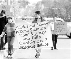 También por medio del volanteo, los habitantes de la demarcación que están siendo afectados por los desarrolladores inmobiliarios informaron a los automovilistas que en Benito Juárez hay 22 colonias con baja presión de agua, y que en 35 las redes de suministro tienen más de 60 años y en algunos casos no se les ha dado mantenimiento. Asimismo, que entre las colonias con mayor riesgo sísmico en el Distrito Federal, están la Alamos, Narvarte y Moderna.