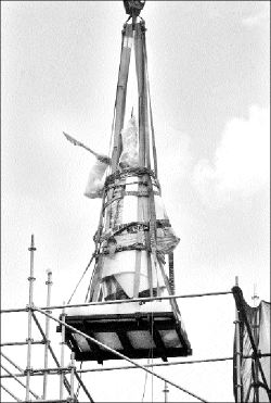 las 13:40 horas de ayer, la escultura dio el primer paso para su reubicación