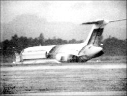 Al llegar la nave a otra pequeña barda de iluminación, también de concreto, la parte baja del aparato prácticamente se desgajó, dejando regados los equipajes y la carga, que se destrozaron en su totalidad. De hecho, desde el primer golpe, los tanques, que iban llenos de turbosina, dejaron escapar combustible.
