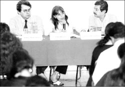 Hernández y la escritora Ethel Krauze en la mesa Cultura hablada