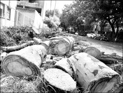 COLONIA DEL VALLE  Troncos de árboles que han sido derribados en la calle de Moras esquina con José María Rico FOTO MARIA LUISA SEVERIANO