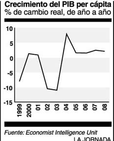 Después de una caída del PIB real per cápita entre 1998 y 2003, se prevé un nada espectacular crecimiento anual en 2004-08. Las presiones de precios suprimidas influirán sobre la inflación durante varios años.