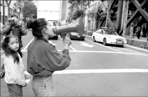 PETICION DE JUSTICIA  Angeles Ileana Murillo, esposa del policía preventivo Edgar Arturo Rojas Escobar, protestó ayer frente a la Secretaría de Seguridad Pública (SSP) capitalina, en compañía de su hija, para exigir la restitución de su cónyuge en la corporación. Con la misma demanda, Rojas Escobar mantuvo un plantón durante varios meses, enfrente de la puerta principal de la dependencia, y la semana pasada fue desalojado. Su destitución ocurrió luego de que fue herido de cinco impactos de bala, en servicio, y días después se le dio de baja "por no ser apto". Ayer, Ileana Murillo se entrevistó con el titular de la dependencia, Marcelo Ebrard Casaubón, quien le prometió reintegrar a su esposo a la SSP y analizar la posibilidad de pagarle salarios caídos, que datan de 1998 FOTO ALFREDO DOMINGUEZ