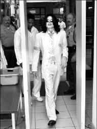 COMPRADOR DE PAZ  El cantante pop Michael Jackson ingresa a la sede de la Corte de Santa María, California, donde se realiza el juicio en su contra por abuso sexual contra menores. En la audiencia de ayer, la estrella musical dijo que en el pasado trató de comprar la paz en dos casos de abuso, pero ahora, involucrado en otro incidente similar, lamentó no haber peleado aquellas acusaciones ante los tribunales FOTO AFP
