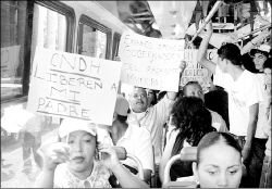 demanda, los manifestantes realizaron un plantón frente al edificio