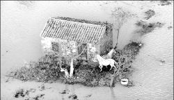 Caballos atrapados durante las inundaciones en Francia,
