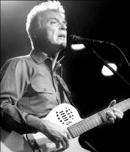 guitarrista Byrne, dando la espalda al público para mirar a su compañero
