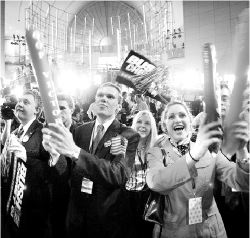 Elecciones en Estados Unidos  Simpatizantes de Bush festejan en Washington las tendencias favorables al mandatario republicano FOTO REUTERS  Largas filas de votantes en el condado Miami-Dade, Florida, estado que finalmente se inclinó por la relección del presidente FOTO REUTERS  Michael Moore, ayer en Tallahassee, Florida FOTOREUTERS  Partidarios de Kerry, en Las Vegas FOTO AFP  Seguidores del senador demócrata esperan en Boston resultados de los comicios FOTO REUTERS