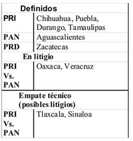 Gana cuatro estados, litiga dos y forcejea dos empates