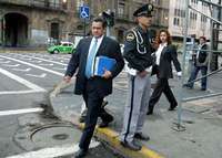El secretario de Seguridad P�a del DF, Joel Ortega, a su salida de la junta de evaluaci�on el jefe de Gobierno capitalino, Andr�Manuel L� Obrador FOTO Maria Melendrez Parada
