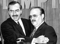 Felipe Mu�y Mario V�ez Ra�durante el convivio de la familia ol�ica FOTO Francisco Olvera