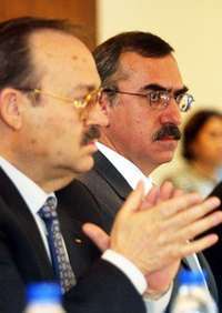 Mario V�uez Ra�izquierda), presidente honorario vitalicio, durante la asamblea donde fue relecto, Felipe Mu�Kapamas como presidente del Comite Ol�ico Mexicano FOTO Yazmin Ortega cortes