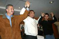 Pachuca, Hgo., 20 de febrero. Las elecciones para gobernador en Hidalgo se encaminaban esta noche hacia una amplia victoria del candidato de la Alianza por Hidalgo (PRI-PVEM), Miguel Osorio Chong, quien con 74.7 por ciento de casillas computadas obtenía 261 mil 53 votos, 52.33 por ciento, frente a 143 mil 347, 28.73 por ciento, del perredista José Guadarrama, y 58 mil 679, 11.61 por ciento, del aspirante panista Antonio Haghenbeck.