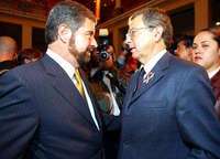 El rector de la UNAM, Juan Ram�e la Fuente, y el diputado del PRD Manuel Camacho Sol� en la antigua Escuela Nacional de Jurisprudencia FOTO Mar�Luisa Severiano