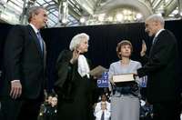 George W. Bush durante el juramento de Michael Chertoff al cargo de secretario de Seguridad Interior, en una ceremonia celebrada en la Suprema Corte de Justicia estadunidense FOTO Reuters