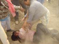 Aspecto del enfrentamiento entre grupo cetemista y habitantes de los pueblos de La Candelaria Tlapala y San Gregorio Cuatzingo, en Chalco, estado de M�co, ocurrido el pasado lunes FOTO Ren�am�lvarado