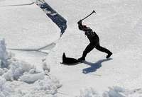 Cazador de focas en acci�n el golfo de San Lorenzo, Canad�ayer FOTO Reuters