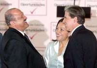 Los titulares de Educaci��a, Reyes Tamez; Desarrollo Social, Josefina V�uez, y Salud, Julio Frenk, durante la sesi�cad�ca de evaluaci�el programa Oportunidades, en la residencia oficial de Los Pinos FOTO GUILLERMO SOLOGUREN