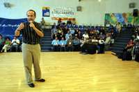 Felipe Calder�inojosa, aspirante a la candidatura presidencial del PAN, durante la reuni�ue sostuvo ayer con menos de un centenar de j�es mexiquenses, en el Parque Naucalli. En el mismo foro estuvo tambi�Fancisco Barrio Terrazas, quien tambi�espera ser el abanderado blanquiazul FOTO Yazm�Ortega Cort�