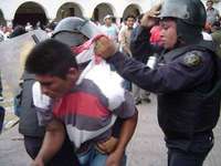 A las 8 de la mañana de este lunes, unos 200 policías de grupos de elite, adiestrados en el manejo de armas y artes marciales, cercaron las instalaciones con los profesores dentro. Por momentos, los policías corrieron hacia los maestros gritando consignas de lucha, pero unos metros antes de llegar a ellos se detenían y regresaban a sus puestos; por una hora repitieron la misma acción, lo que mantuvo en alerta a los maestros paristas, quienes no desalojaron el inmueble.