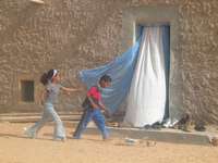 En el campamento de refugiados 27 de febrero, en Tindouf, Sidi y Hadya, primos de siete a� esperan su turno para el programa "Vacaciones en paz", en Espa�un atisbo al primer mundo y una oportunidad para su educaci�OTO Blanche Petrich