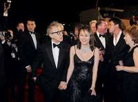 Woody Allen y su esposa Soon Yi dejan la sala donde se proyect� m�reciente producci�el director estadunidense, Match point, en Cannes. La cinta se present�era de competencia FOTO Afp