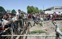 Uzbekos intentan pasar el puente que cruza el r�Shakhrikhansai hacia Kirguist� Autoridades reportaron que miles abandonan la zona de conflicto FOTO Reuters