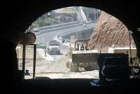 El jefe de Gobierno confirm�er que el 29 de mayo ser�inauguradas las obras viales del Eje 5 Poniente. Aqu�trabajadores de la construcci�aboran en lo que ser�los puentes gemelos FOTO Carlos Ramos Mamahua