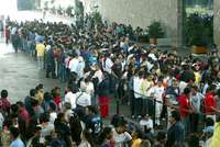 Desde su apertura, el 29 de marzo, hasta el domingo pasado, cerca de 240 mil personas han visitado la exposici�ara�el culto al Sol, que se lleva a cabo en el Museo Nacional de Antropolog� Cada d�se tiene que hacer fila entre tres y siete horas antes de ingresar a la sala. Sin embargo, ha estado ocurriendo que luego de esa espera, a unos pasos de entrar y cumplido el horario de visita, la sala es cerrada, ante el enojo, la frustraci� impotencia del p�o. Al pedir informaci�especto de ese problema, La Jornada recibi�mo respuesta: "no hay qui�la d�FOTO Mar�Luisa Severiano