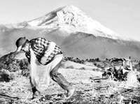 En los l�tes de Milpa Alta, Morelos y el estado de M�co, un campesino labora en el cultivo de papa. Al fondo, el volc�Popocat�tl FOTO Jes�llaseca