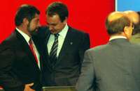 El rector de la Universidad Nacional Aut�a de M�co, Juan Ram�e la Fuente, y el presidente del gobierno de Espa�Jos�uis Rodr�ez Zapatero, durante el primer Encuentro Internacional de Rectores Universia FOTO Notimex