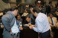La frustración se reflejó en los rostros de priístas y perredistas. El presidente de la mesa directiva, Cipriano Gutiérrez, trastabilló en medio del acoso de ambas partes. Los panistas exi-gían oficializar el resultado, en tanto que PRI y PRD reclamaban reponer la votación. Ambos partidos estaban decididos a votar el dictamen pactado entre ellos.