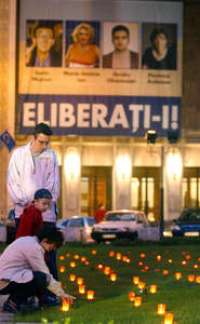 Rumanos oran en Bucarest en agradecimiento por la liberaci�e tres informadores en Irak FOTO Ap