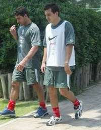 Sinha y P�z, al t�ino del entrenamiento del Tri en el Centro Pegaso FOTO Carlos Ramos Mamahua