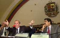 El titular del Parlamento cubano, Ricardo Alarc�acusa en la Asamblea Nacional venezolana al presidente Bush de proteger al terrorista Luis Posada Carriles. A su derecha, el l�r camaral venezolano, Nicol�Maduro FOTO Ap