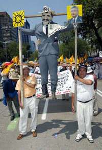El ingenio, la inteligencia, el sentido del humor, la nobleza y la libertad campearon en la mayor manifestación en la historia de nuestro país, la del domingo 24 de abril de 2005. Las mantas y pancartas con el rostro de Andrés Manuel López Obrador bailaban alegres al son de las pisadas más o menos silenciosas. "Todos somos López", "No al desafuero de López Obrador", "AMLO, estamos contigo... aunque Fox no quiera". "No a la canallada de López Obrador" podía leerse en un puesto de muñecos de peluche y en un taxi. "Sí a la democracia, yo apoyo a AMLO", en un poste de luz. "AMLO, ¡gracias! No al desafuero", en un puesto de tepache en la plaza de la Constitución alfombrada de playeras, gorras, banderines, paliacates, globos inflados de helio con la cara del Peje. "No es una pesadilla, Fox, sí estamos aquí".