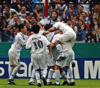 Antes de que Gilberto Alcalá decretara el final del partido, seguidores del América, campeón del torneo Clausura 2005, ya habían llegado al Zócalo.