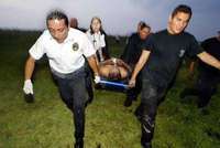 Labores de rescate de socorristas. Aqu�rasladan a un herido FOTO Alfredo Dom�uez
