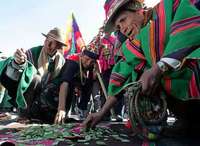 Ind�nas recogen hojas de coca luego de un ritual en La Paz para orar por la tranquilidad en Bolivia, afectada por una crisis pol�ca que ha llevado a la renuncia del presidente Carlos Mesa FOTO Reuters