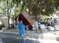 Trabajadores sacan muebles del restaurante bar ubicado en la calle Chilpancingo 16, colonia Condesa, desalojado ayer, en el cual estaba programado un acto de la pri�a Beatriz Paredes FOTO Jos�arlo Gonz�z