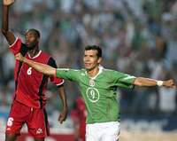 Jared Borgetti festeja el gol que le anot�Trinidad y Tobago, el primero de los dos que marc� equipo mexicano FOTO Reuters