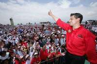 Al mitin, realizado al viejo estilo priísta, asistieron profesores, integrantes de sindicatos, de organizaciones sociales, vecinos de los 15 municipios de la región, funcionarios públicos del ayuntamiento de Ecatepec y policías vestidos de civil, que fueron acuartelados para apoyar el acto. Un helicóptero sobrevoló el escenario, un dirigible con la propaganda del candidato surcaba el cielo y varias pantallas gigantes proyectaron la jornada.