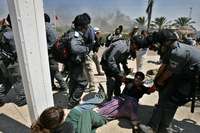 La operación terminó en 15 minutos y sin que hubiera lesionados, luego de que el ejército declaró zona militar cerrada al bloque de asentamientos judíos en Gush Katif para poner fin a la llegada de religiosos derechistas que quieren impedir la retirada planeada para agosto. Los colonos fueron retirados del lugar lanzando patadas y gritando.