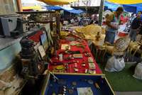 En el piso yacen cientos de fotografías. Bebés, parejas, familias, hombres y mujeres ataviados con sus mejores galas, en todo tipo de actos sociales. Diplomas, certificados, constancias, recuerdos de aniversarios, en apretada convivencia con carburadores, llantas, tornillos y películas porno. Un puesto exhibe una legión de muñecas barbys mutiladas, otro ofrece decenas de puños verdes de Hulk, "¡a cinco varos!" Enfrente hay más de 20 dentaduras de plástico "de a dos la pieza o tres por cinco", y allá se ofrece una jaula ratonera oxidada, con todo y el cebo prendido a la trampa.