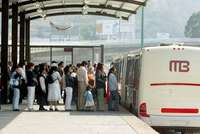 Usuarios listos para abordar el cami�rticulado en la estaci�ndios Verdes FOTO Mar�Luisa Severiano