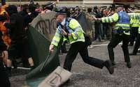 Enfrentamiento de polic� y manifestantes en Edimburgo, Escocia, en el contexto de una serie de protestas contra la cumbre del G-8, que se inicia ma� FOTO Reuters