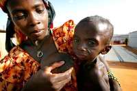 Una madre trata de amamantar a su hijo desnutrido en un centro de apoyo alimentario en N�r, pa�azotado por una intensa sequ�que afecta a m�de 3 millones y medio de personas FOTO Reuters