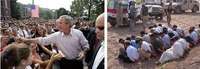George W. Bush, tras su discurso en Virginia Occidental. A la derecha, parte de los detenidos ayer en la batida contra la resistencia iraqu�n Bagdad FOTO Ap y Reuters